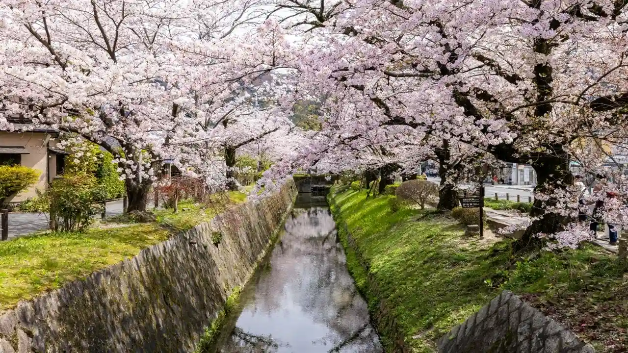 Philosopher’s Path turns into a calm pink walkway when cherry blossoms bloom along the canal. The petals fall gently on the water, and the whole stretch feels quiet and soothing. Small cafés and tiny craft shops appear along the route, giving the walk a warm local touch. It becomes one of the most loved places to visit in Kyoto during spring because you can enjoy the blossoms without rushing. Early mornings here feel especially peaceful.