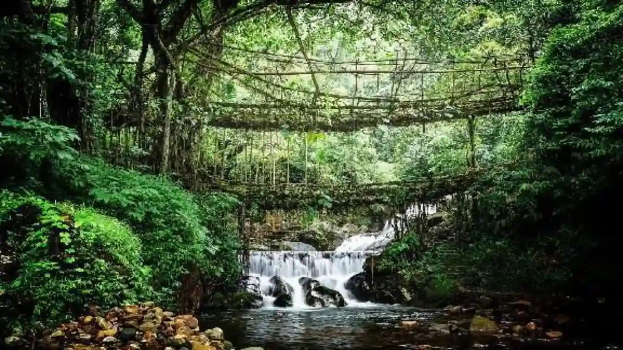 The double-decker living root bridges near Cherrapunji are what everyone comes to see. These aren't normal bridges but living structures made from rubber tree roots that villagers have trained to grow across rivers over decades. A single bridge takes about 15 years to become strong enough for people to walk on. The trek involves climbing down around 3,500 stone steps through dense jungle that never really dries out. Streams cross your path, and the tree canopy overhead is so thick that you'll barely see the sky. This spot pulls massive crowds during tourist season, so getting there early in the morning helps you avoid the rush.