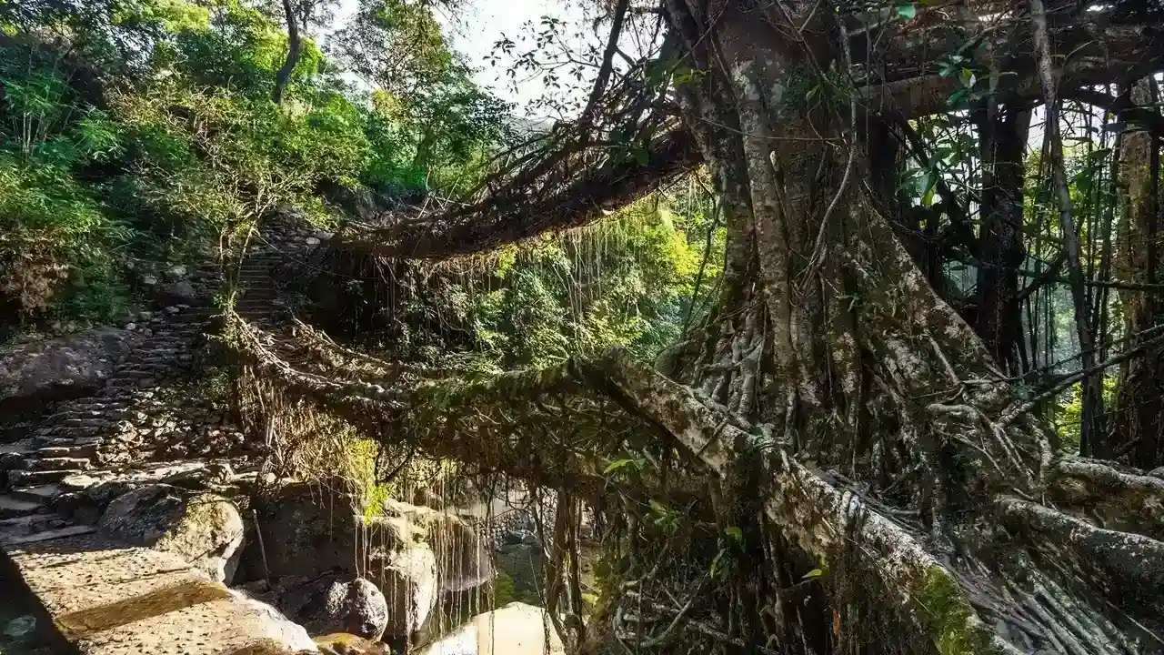 Cultural significance: Ancient Khasi bio-engineered double-decker living bridge.