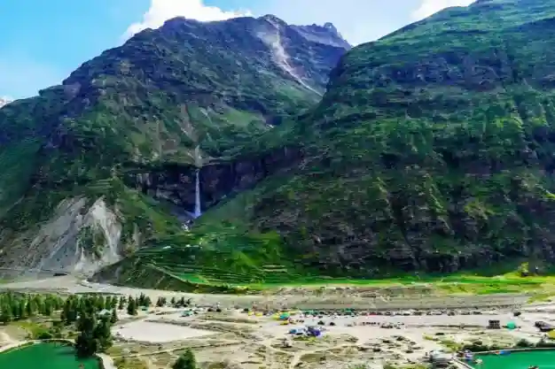 Sissu Falls pours straight down from mountain cliffs into the Chandra River running below, creating amazing views along the Manali-Leh highway. The waterfall drops about 500 feet, visible clearly from the road without walking anywhere. Melting glaciers keep this waterfall going, flowing hardest during summer when ice thaws quickly. Sissu village offers basic rooms and meals for overnight stays. This waterfall got more visitors recently among Waterfalls near Delhi after the Atal Tunnel opened, letting travellers reach Sissu easily year-round.